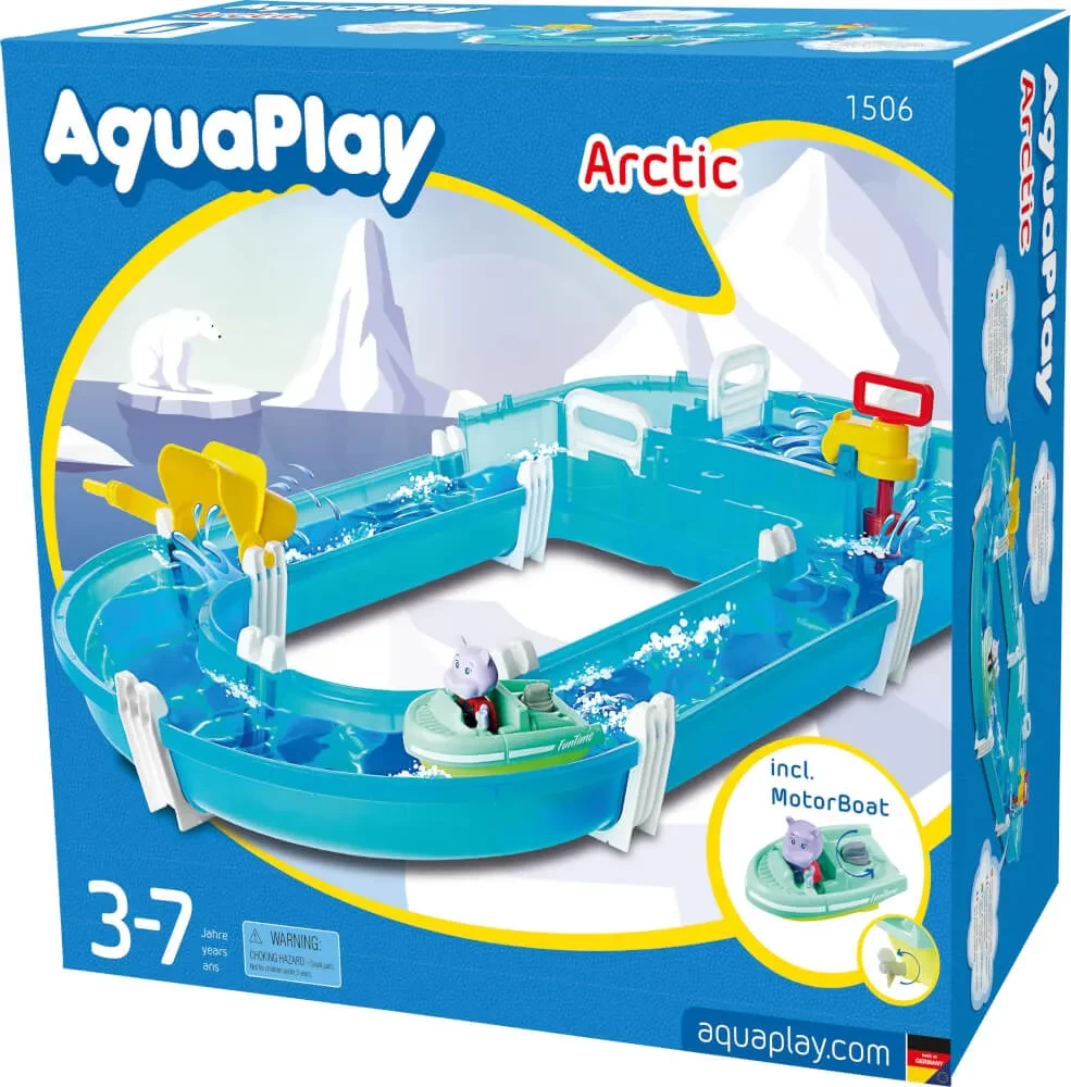 L’AquaPlay Artic est fabriqué en Allemagne et est facile à assembler et à combiner avec d’autres ensembles de jeu et extensions AquaPlay.L’ensemble comprend un bateau à remontage manuel avec figurine et une écluse avec pompe à eau.