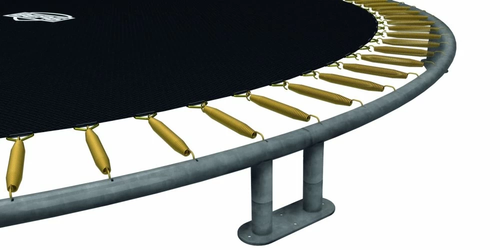 Les pieds courts du trampoline InGround ne sont pas enterrés et sont plus résistants à la rouille. La durée de vie de votre trampoline est donc beaucoup plus longue.