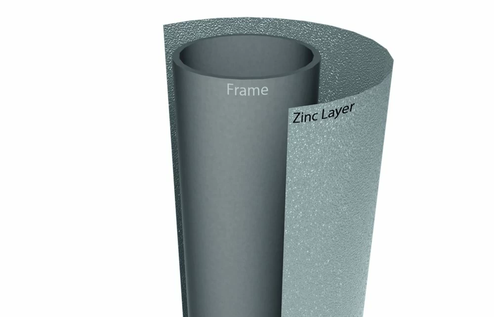 L’encadrement est inoxydable et a un revêtement en zinc solide.