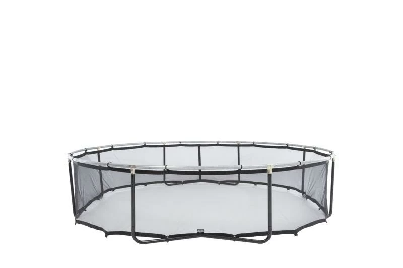 Avec le Frame Net tendu au bas du bord de protection jusqu’au sol, les enfants, les animaux et les jouets ne peuvent plus passer sous le trampoline. Cela évite les situations dangereuses, surtout si vous sautez sur le trampoline entre-temps. Le Frame Net Extra est fait d’un filet de haute qualité résistant aux intempéries. Les ?illets de fixation galvanisés, les boucles et les chevilles offrent un ancrage supplémentaire. Les Frame Nets ne sont disponibles que pour nos trampolines ronds. Le BERG Frame Net Extra est disponible dans les tailles de diamètre : 270, 330, 380 et 430cm