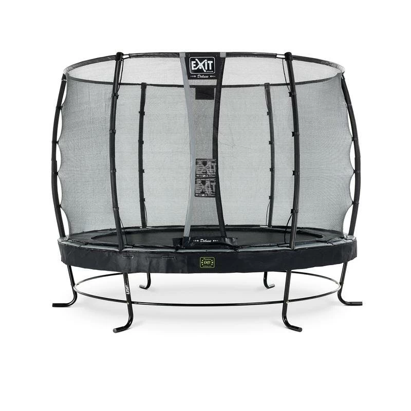 Le trampoline enterré EXIT Elegant avec filet de sécurité Deluxe est un trampoline enterré de bonne qualité. Ce trampoline est en partie enterré dans le sol, ce qui est non seulement très sûr, mais aussi très joli dans le jardin. Les trampolines EXIT Elegant ont également la durabilité à l’esprit. Le cadre est galvanisé puis revêtu de poudre, ce qui exclut tout risque de rouille. Et le bon rebond – c’est-à-dire un beau saut – et un atterrissage en douceur assurent un confort de saut agréable. La bavette peut être rapidement fixée au bord protecteur à l’aide d’une fermeture à glissière. Un filet de sécurité est fourni avec les trampolines enterrés EXIT Elegant. Le filet de sécurité Deluxe comporte une entrée adaptée aux enfants par la porte à recouvrement et offre une protection supplémentaire, car le trampoline enterré est déjà bas sur le sol. En outre, le filet de sécurité Deluxe offre une qualité élevée. Le filet est toujours bien tendu par des anneaux en fibre de verre en haut et en bas. Le filet de sécurité a une finition de haute qualité, même avec la mousse extra épaisse autour des poteaux. Le trampoline enterré Elegant est équipé de toutes les commodités pour des heures de plaisir de saut !