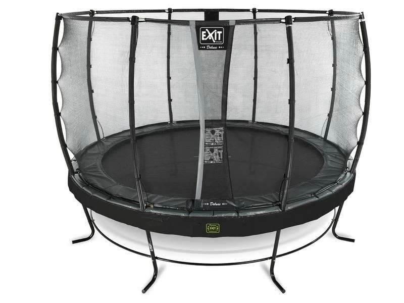 Le trampoline EXIT Elegant Premium avec filet de sécurité Deluxe est un trampoline de très bonne qualité. Le trampoline Elegant d’EXIT Toys possède le cadre le plus stable au monde, est durable, de bonne qualité et très facile à monter. Le cadre de stabilité ultime (USF) breveté, avec ses pattes uniques en forme de L, est extrêmement solide et donc super sûr et stable. Ce trampoline EXIT Elegant Premium est équipé en série d’un filet de sécurité Deluxe avec une entrée adaptée aux enfants par la porte à recouvrement. Le filet de sécurité Deluxe a une finition de haute qualité avec une mousse extra épaisse autour des poteaux et est tendu tout autour par des anneaux en fibre de verre en haut et en bas. Les trampolines EXIT Elegant Premium sont non seulement beaux et de bonne qualité, mais aussi durables. Le cadre est galvanisé puis revêtu de poudre, ce qui exclut tout risque de rouille. Comparé au trampoline Elegant standard, le trampoline EXIT Elegant Premium possède des ressorts extra longs pour une expérience de saut ultime et une jupe plus longue sur le bord de protection pour une plus belle apparence. Le rembourrage est également plus épais pour une protection encore plus grande et la couche supérieure en PVC plus épaisse prolonge la durée de vie. Le système de fixation innovant du cadre permet de monter le trampoline beaucoup plus facilement qu’avec d’autres trampolines. Le bord protecteur est robuste et équipé d’un système de protection des pieds (FPS) spécialement développé par EXIT Toys, de sorte que vous ne pouvez jamais mettre votre pied entre les ressorts pendant le saut sur trampoline. Le trampoline EXIT Elegant Premium est prêt à l’emploi en une heure, alors qu’attendez-vous ? Sautons !
