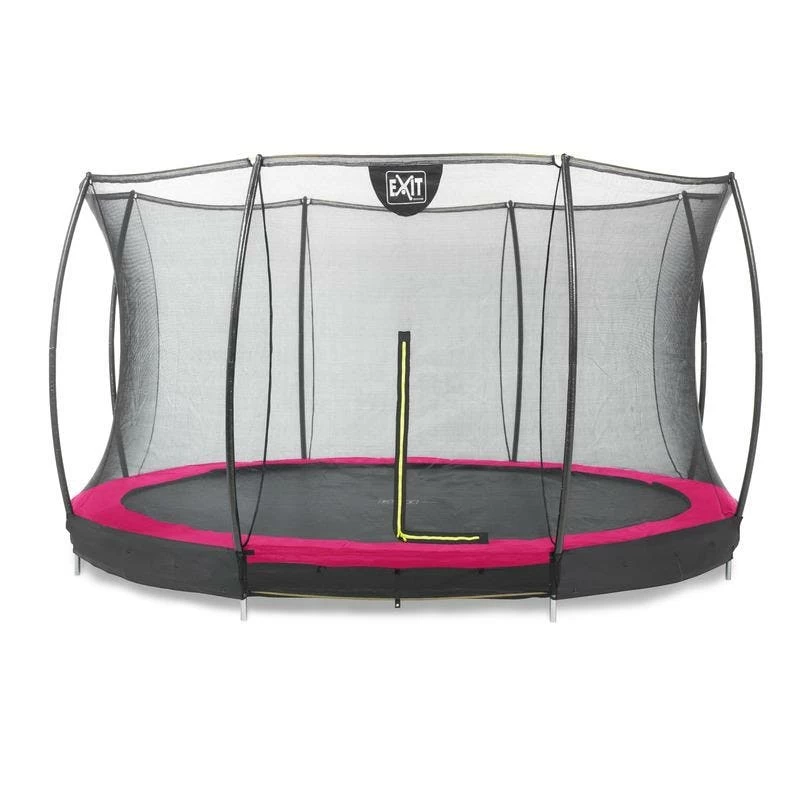 Le trampoline enterré EXIT Silhouette est un trampoline rond avec un bord de protection rose. En un rien de temps, tu creuses un trou dans le sol, là où le trampoline est installé pour un joli résultat sécurisé. De cette façon, les parents n’ont pas à s’inquiéter que leurs enfants tombent d’un trampoline sur pieds s’ils ratent un saut. La combinaison d’un trampoline enterré et d’un filet de sécurité assure une sécurité maximale. Le filet de sécurité fourni est équipé de montants courbés afin que le filet soit bien tendu. C’est non seulement plus sûr parce que les enfants ne peuvent pas rester coincés dans le filet, mais cela donne une impression plus tranquille dans le jardin. Le filet de sécurité est doté d’une fermeture éclair verte fluorescente bien visible, de telle sorte que tu puisses voir immédiatement si elle est bien fermée. Le bord de protection de haute qualité du trampoline Silhouette recouvre complètement les ressorts galvanisés et est équipée d’un système dédié de protection des pieds, de telle sorte qu’on ne puisse pas se coincer les pieds entre les ressorts. Les ressorts robustes garantissent une qualité de rebond exceptionnelle de saut. Le cadre du trampoline Silhouette est galvanisé puis thermolaqué, la rouille n’a donc plus aucune chance. Les trampolines EXIT Silhouette sont cool, robustes et permettent de sauter de joie indéfiniment !
