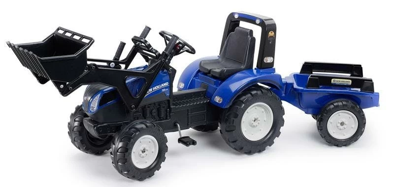 Cette chargeuse-pelleteuse New Holland, spécialement conçue pour les petits aventuriers de 3 à 7 ans, est une réplique fidèle à pédale du modèle T8. Le chargeur frontal articulé permet à votre enfant de déplacer du sable, de la terre ou des feuilles. Pour encore plus de possibilités de jeu, il est équipé d’une grande remorque avec des panneaux latéraux. En tant que jardinier et agriculteur, votre enfant développera son autonomie et son imagination. Cette pelleteuse maniable 100% made in France avec un volant avec klaxon garantit des heures d’activités en plein air !