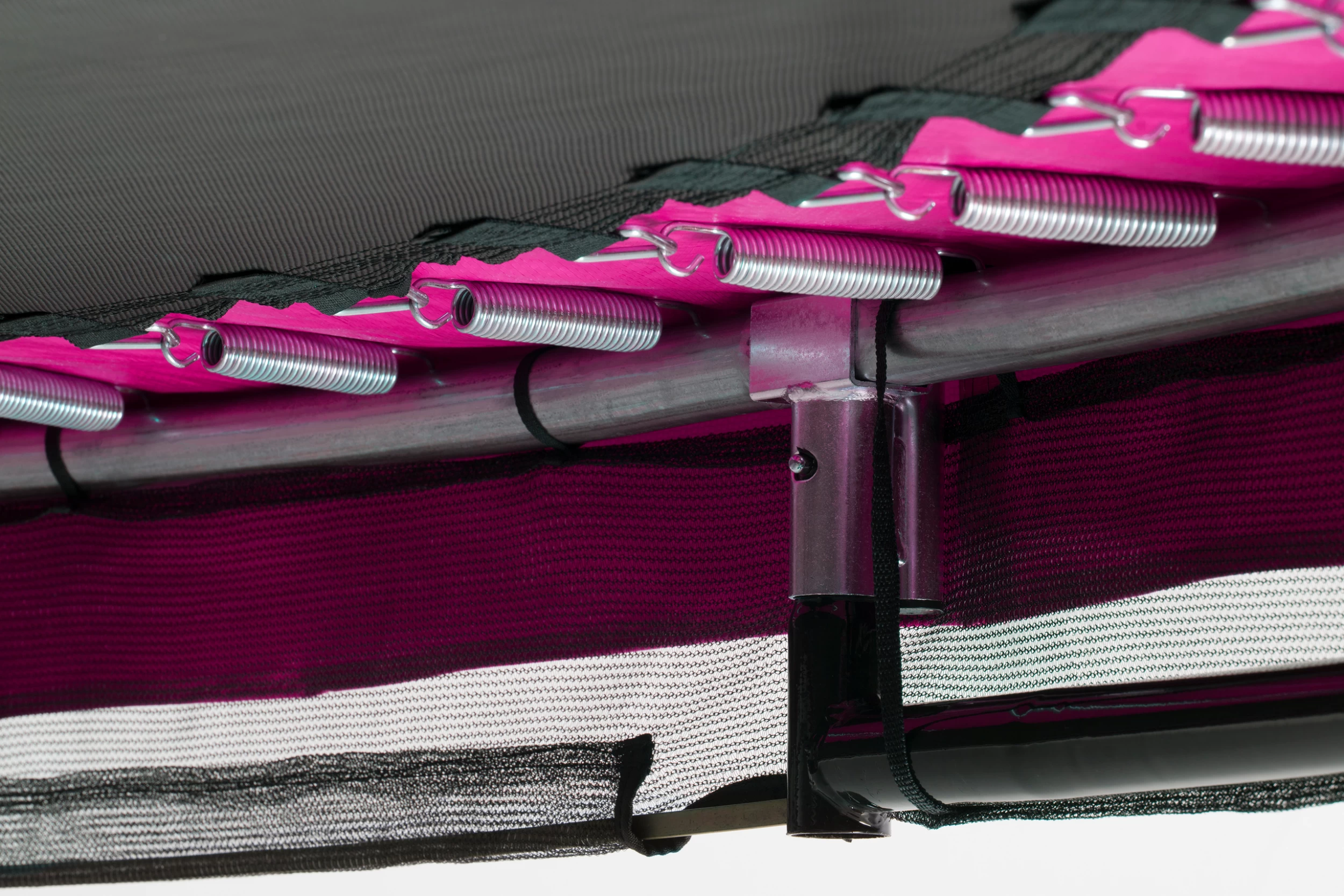 Les cadres en acier de la durable Salta Comfort Edition sont galvanisés et ont un revêtement noir brillant. La construction de l’anneau supérieur en acier maintient le filet de sécurité dans sa forme élégante, ce qui signifie que le filet doux à mailles fines reste très bien étiré. De plus, le trampoline a un bord de protection épais et large, qui protège complètement les doubles ressorts coniques galvanisés. Avec les ancrages au sol robustes inclus, le trampoline peut être ancré plus fermement dans le sol. La Salta Comfort Edition offre une expérience de saut unique et des années de plaisir à sauter!