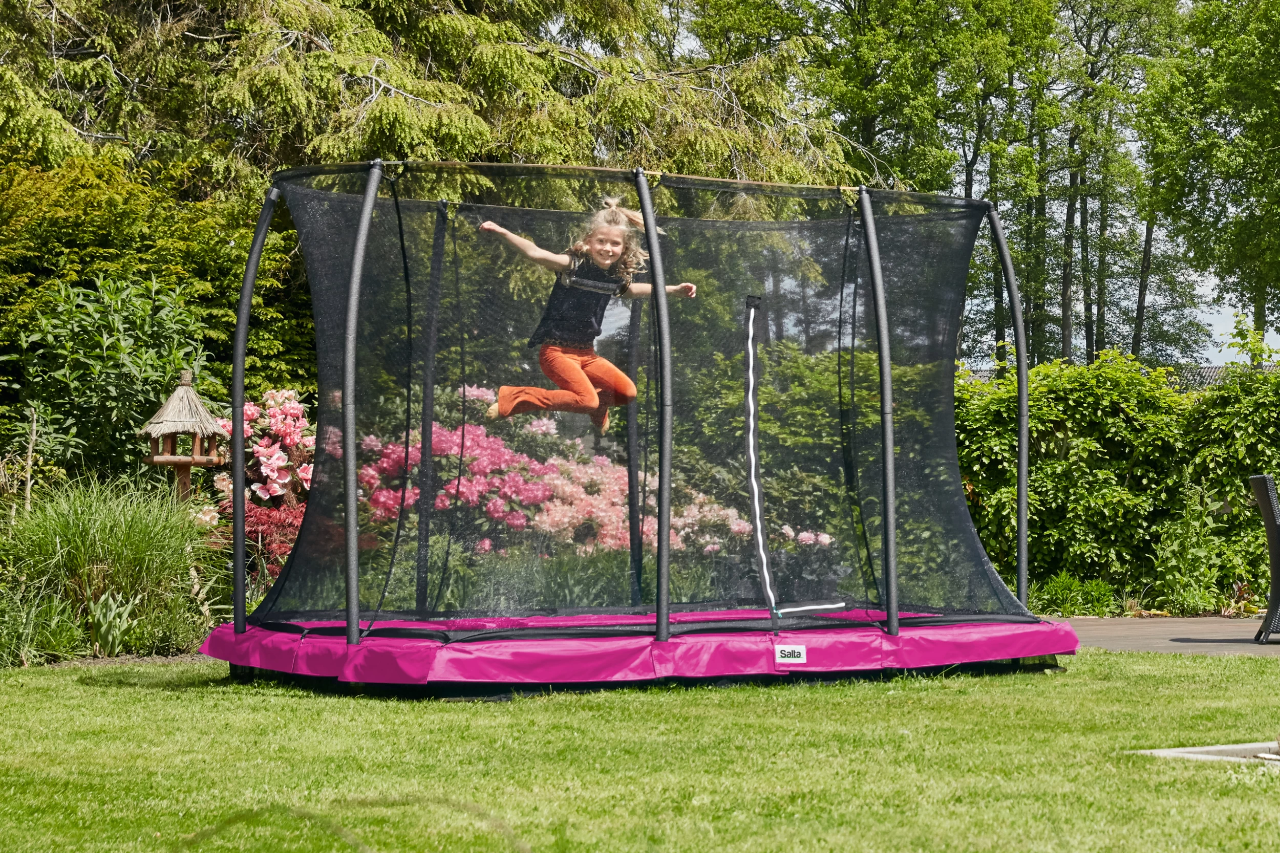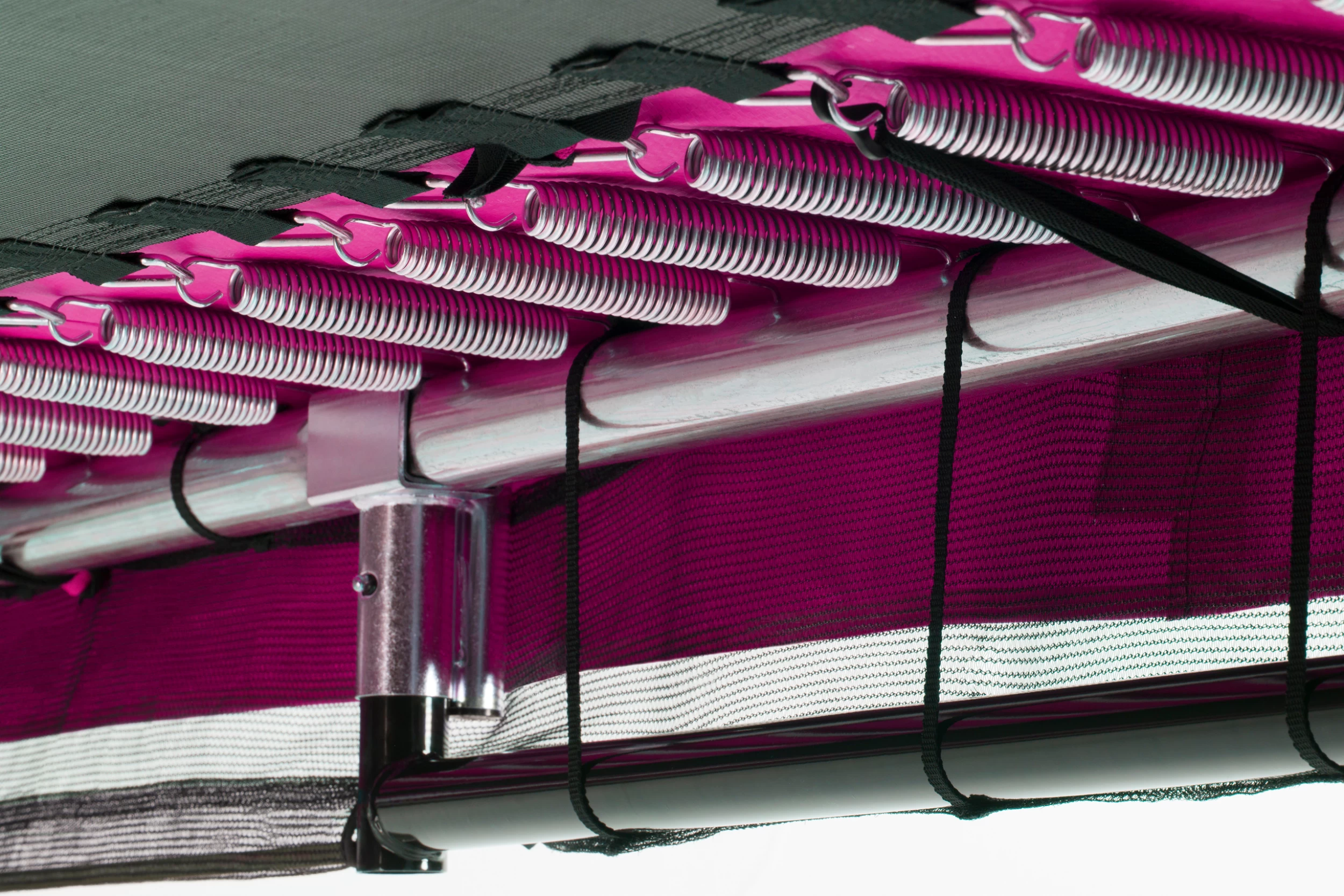 Pour un saut confortable, le trampoline est équipé d’un filet au fond, permettant à l’air libéré lors du saut de se déplacer de manière optimale. Grâce aux solides ancrages au sol inclus, le trampoline peut être ancré très solidement dans le sol. Le trampoline ne se trouve qu’à 20 cm du sol ; la faible hauteur de la marche et de la descente permet aux enfants d’entrer facilement dans le trampoline. Le cadre en acier noir est galvanisé et assure une construction solide. Lorsque vous sautez sur le Comfort Edition Ground, vous ne devez pas craindre pour votre sécurité, le filet de sécurité tendu offre une protection optimale pendant le saut. La fermeture éclair double face permet aux enfants d’ouvrir et de fermer facilement le filet des deux côtés.