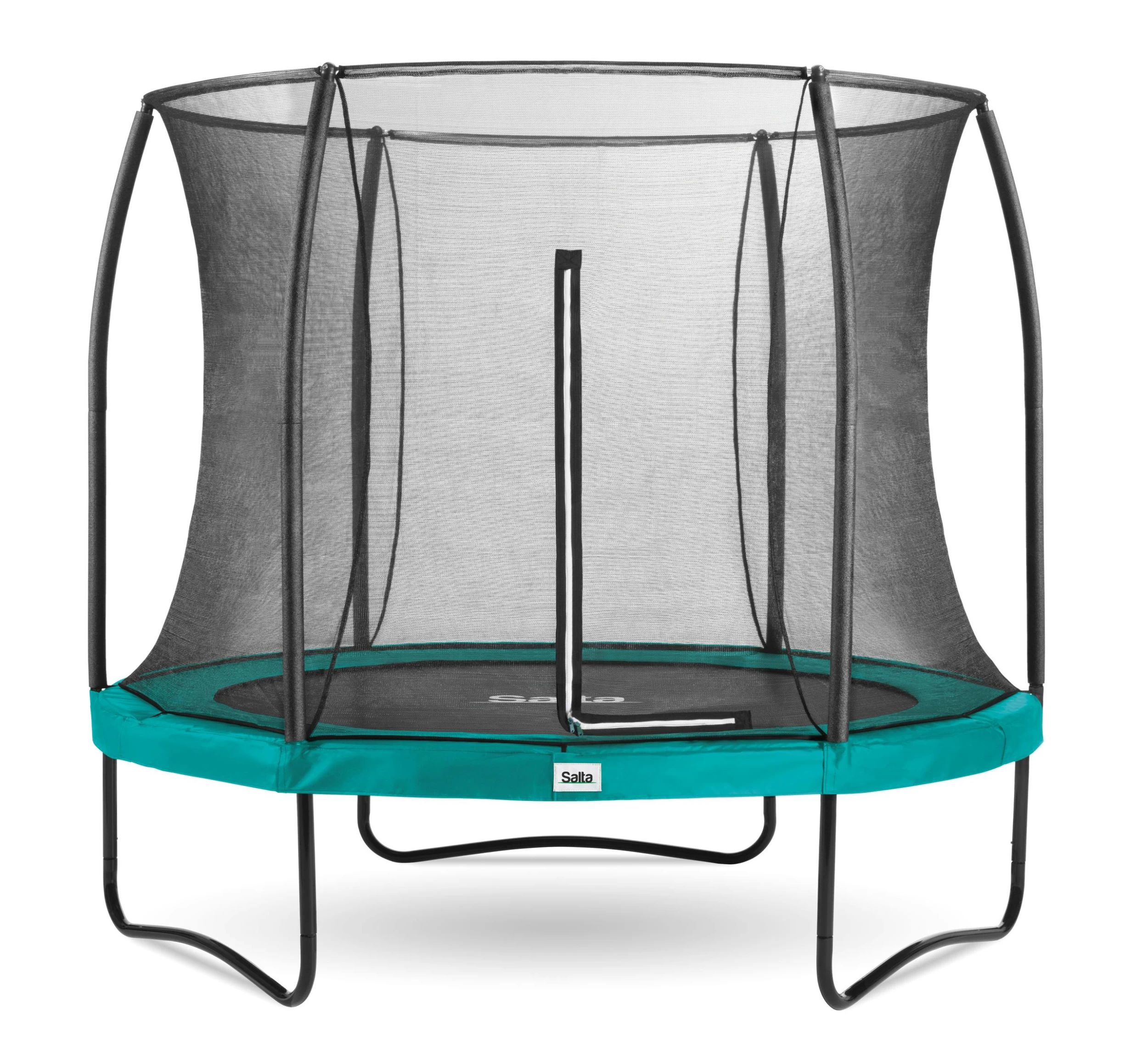 Le cadre en acier est galvanisé avec un revêtement noir brillant et donne au trampoline une base solide. Le filet de sécurité est conçu pour offrir une protection et une sécurité optimales lors des sauts. La construction de l’anneau supérieur en acier permet également de maintenir le filet souple à mailles fines dans une forme élégante et donc de le garder bien tendu. En outre, l’entrée du filet de sécurité est équipée d’une fermeture éclair double face, ce qui vous permet d’entrer facilement dans le trampoline et de fermer le filet en toute sécurité.