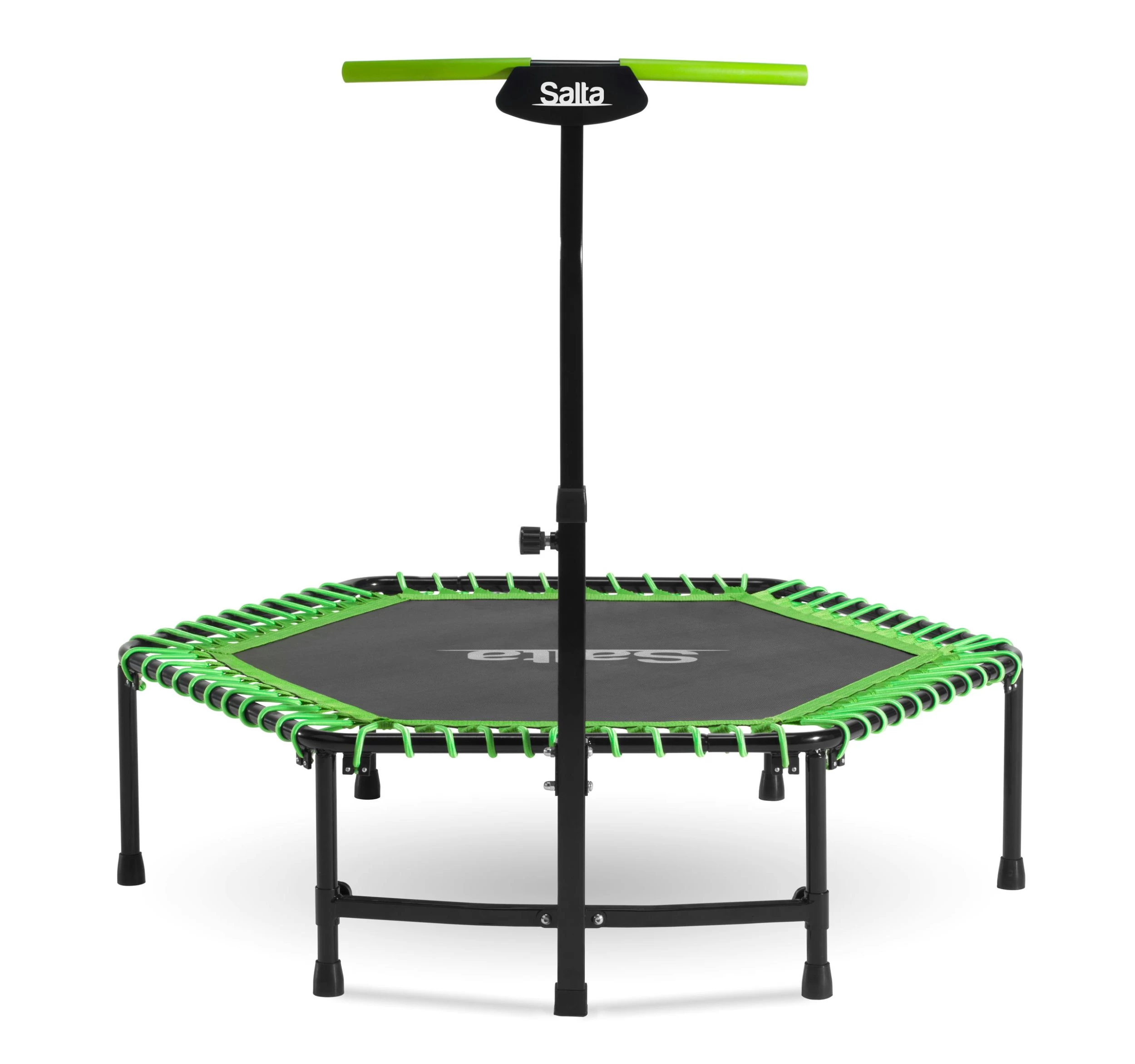 Ce trampoline professionnel Salta Fitness est idéalement adapté aux avancés, mais aussi à l’utilisateur novice. Les débutants peuvent bénéficier d’une stabilité et d’un soutien supplémentaires avec le support fourni, et pour les utilisateurs avancés, le support peut être utilisé pour des entraînements avancés. Le trampoline de fitness a une taille d’au moins 128 cm, de sorte que tous les entraînements et les exercices de fitness peuvent être effectués efficacement. Parce que la suspension élastique est ajustée de manière optimale et confortable, il est possible de sauter en silence et le saut n’est pas stressant pour le dos et les articulations. Cela vous permet de former tous les muscles de manière responsable pour améliorer votre forme physique et votre endurance. Le trampoline Salta Fitness est conçu de telle manière que la construction forme un ensemble très solide et robuste. Le support est facilement réglable dans 5 positions différentes pour n’importe quelle hauteur souhaitée. Le trampoline de fitness est sûr à utiliser avec et sans support grâce au cadre inclus. Le trampoline a été largement testé pour un poids maximum de 110 kg et adapté à une utilisation commerciale, publique et bien sûr à la maison.