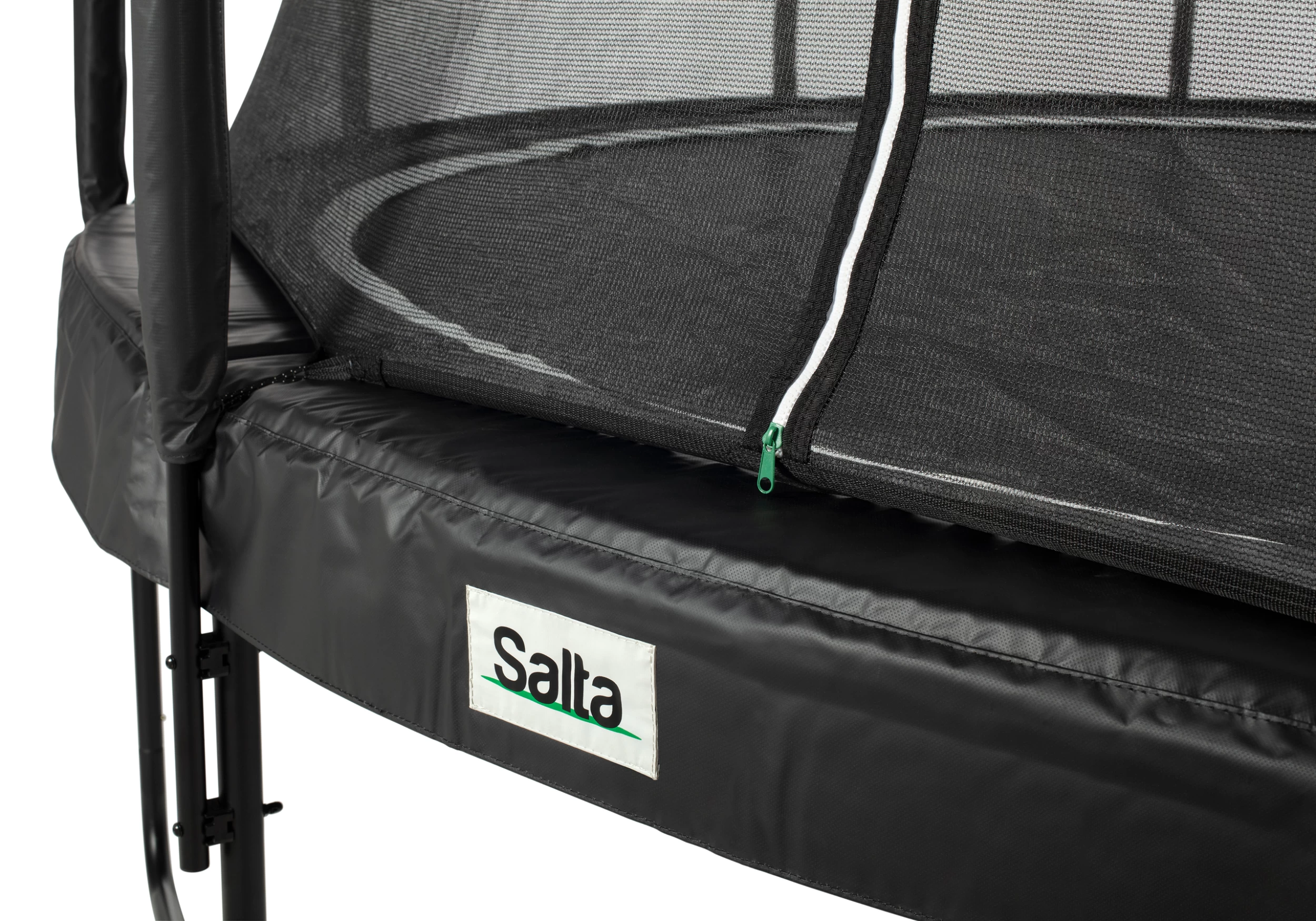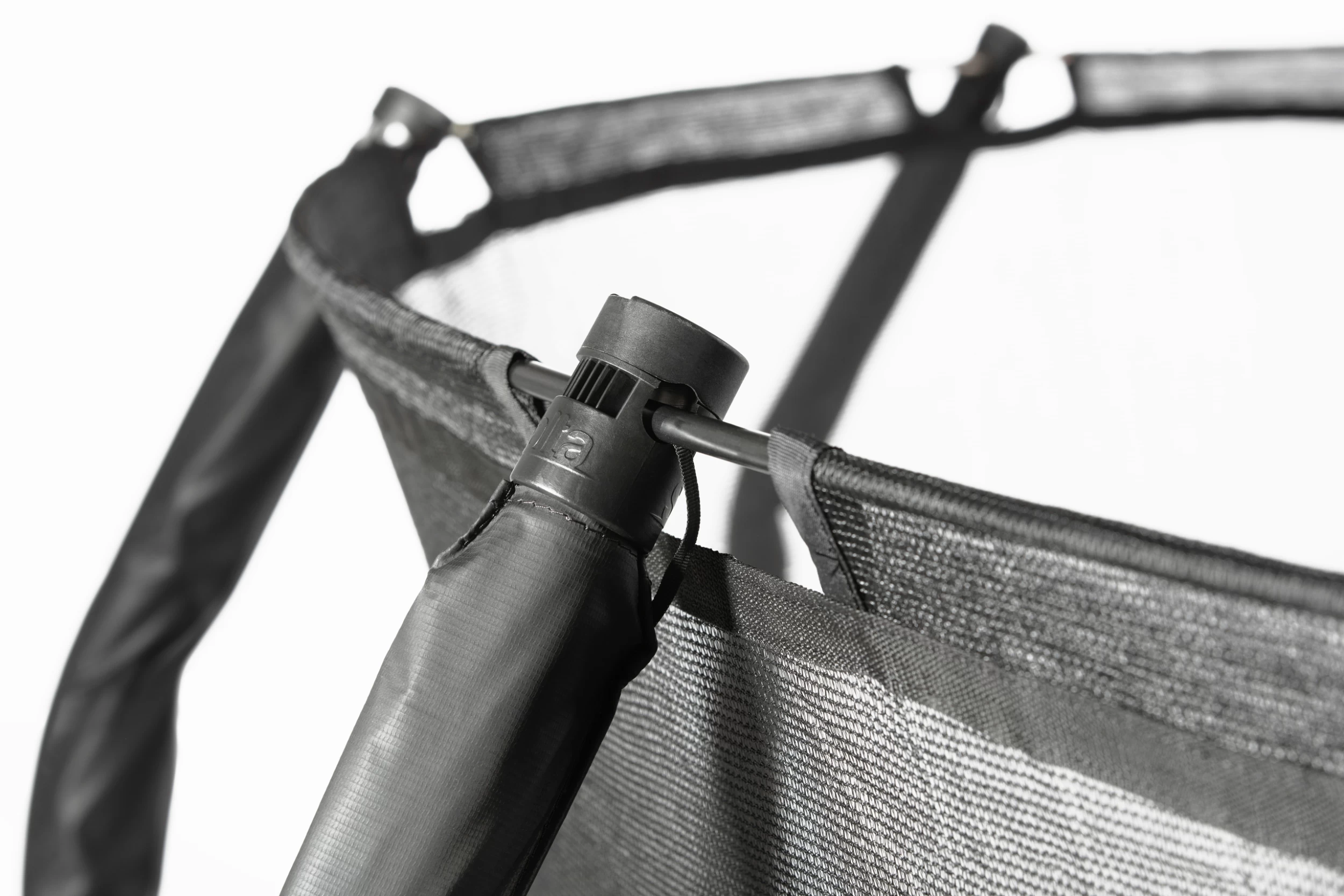 Tout d’abord, grâce à la forme ronde de la Salta Comfort Edition, vous sautez toujours au centre. C’est bien, car les risques de chutes possibles sont réduits. Le filet de sécurité attrape également vos enfants en toute sécurité! Au sommet du filet de sécurité se trouve un anneau de fibre de verre qui maintient le filet en forme. Le bord protecteur avec jupe extra longue assure un atterrissage en douceur et résiste à l’usure. De plus, les poteaux robustes du trampoline ont une coque en mousse, ce qui rend également une chute un peu plus douce. Voulez-vous protéger le trampoline avec une housse de protection? Ensuite, vous devez d’abord démonter le filet de sécurité. C’est très facile grâce au système de clic pratique.
