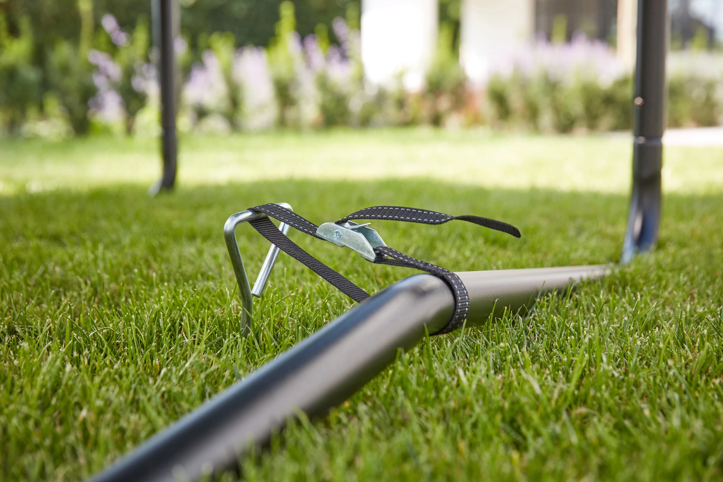 Contrairement aux jeux d’ancrage standard, le jeu d’ancrage de Salta est uniquement fixé à la partie inférieure du trampoline. Cela permet de fixer le set d’ancrage à votre trampoline de manière sûre et discrète. Grâce à l’ancrage, votre trampoline ne se renversera plus pendant une tempête ! De plus, la stabilité est accrue et le trampoline ne bougera plus lors des sauts.
