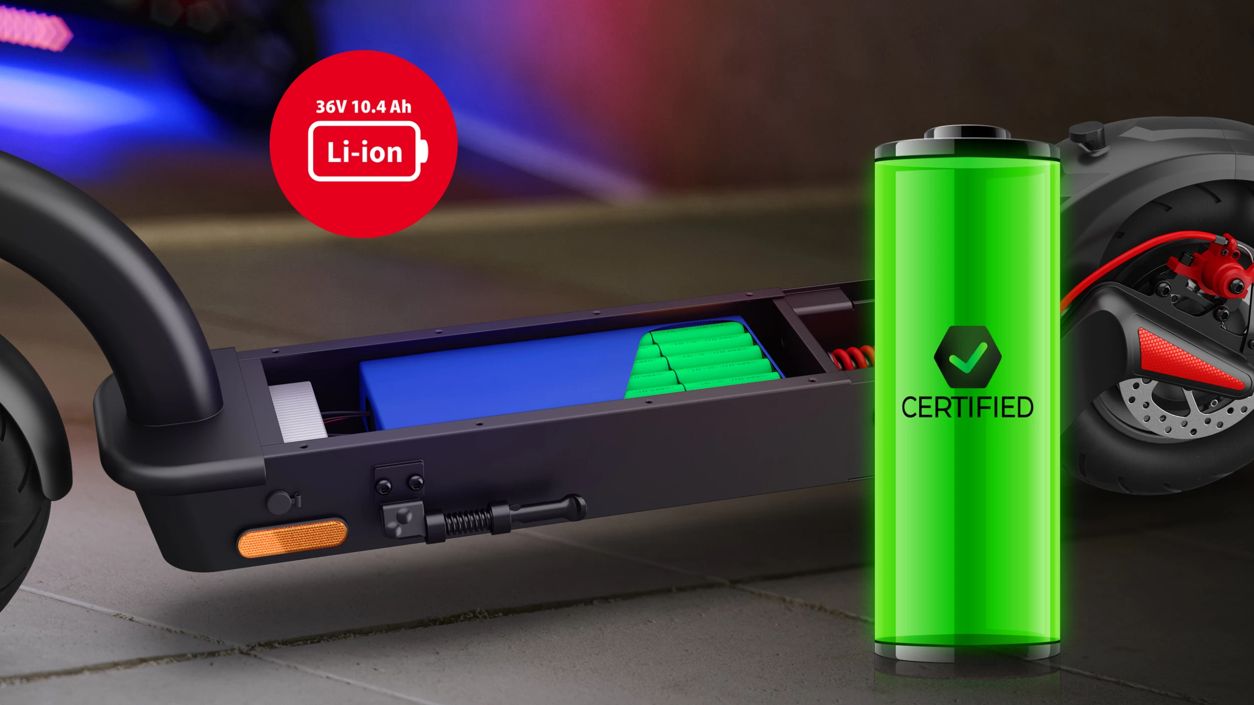 - Batterie certifiée 36V 10,4 Ah (374,4 W)