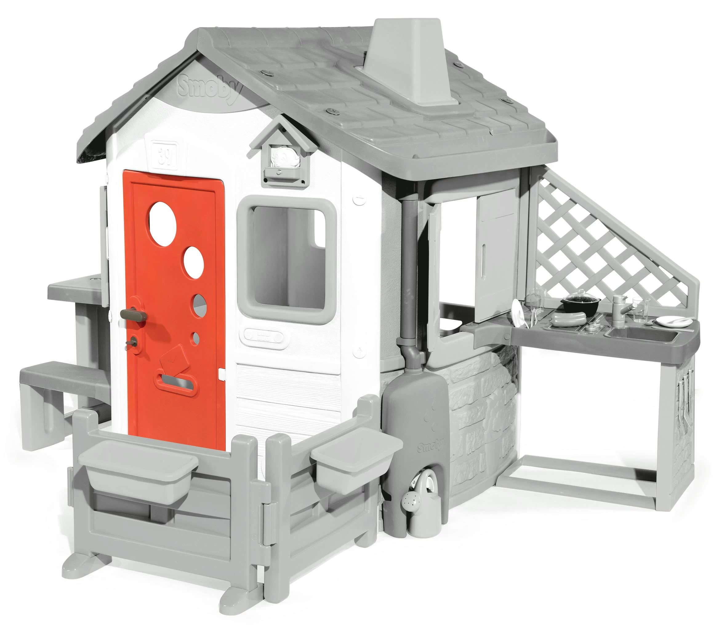 Vos enfants pourront personnaliser leur maison de jardin en remplaçant le portillon de l’entrée par une grande porte. La cabane de jardin Smoby ressemblera alors à une véritable maisonnette. En plus vos petits pourront verrouiller grâce à une serrure fonctionnelle et réaliste. Mais pas d’inquiétude, l’arrière de la maison dispose toujours d’un portillon pour sortir.