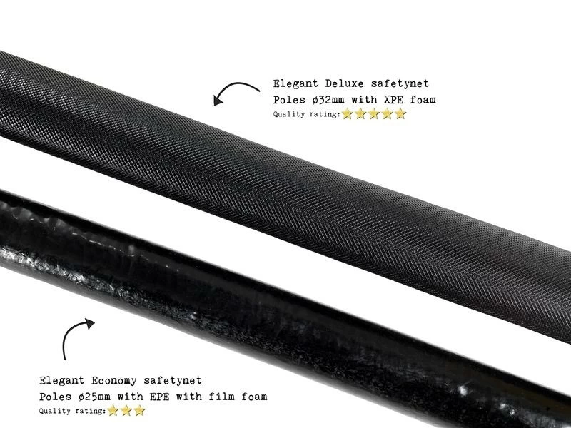 Un filet de sécurité est fourni avec les trampolines enterrés EXIT Elegant. Le filet de sécurité Economy possède une entrée conviviale pour les enfants via la porte à recouvrement et offre une protection supplémentaire car le trampoline enterré est déjà bas sur le sol. Un saut violent vous envoie dans le filet de sécurité ? L’épaisse couche de mousse entourant les poteaux du filet de sécurité vous assure un atterrissage en douceur.