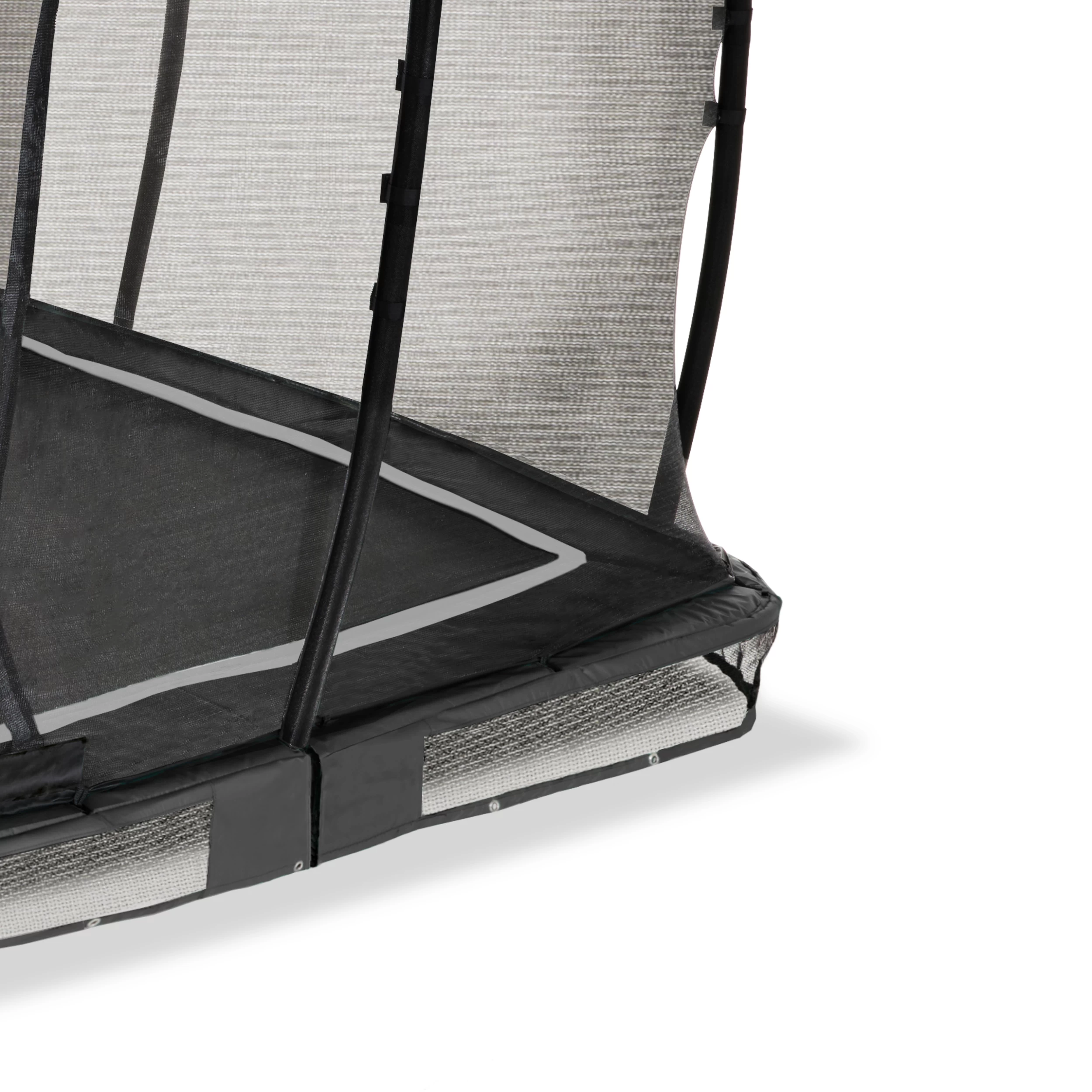Le trampoline enterré EXIT Allure Classic est un trampoline enterré avec un bord de protection et un filet de sécurité. Grâce au Foot Protection System EXIT (FPS), un filet entre le tapis de saut et le bord de protection du trampoline, les sauteurs du trampoline ne risquent pas de glisser leurs pieds entre les ressorts. Le trampoline enterré Allure est partiellement enterré et est donc facile d’accès pour tout le monde. De plus, le trampoline est livré avec un filet de sécurité. Le filet de sécurité a une entrée superposée qui se ferme automatiquement, de sorte qu’il ne reste jamais ouvert de façon inopinée. Les poteaux du filet de sécurité sont également recouverts de mousse.