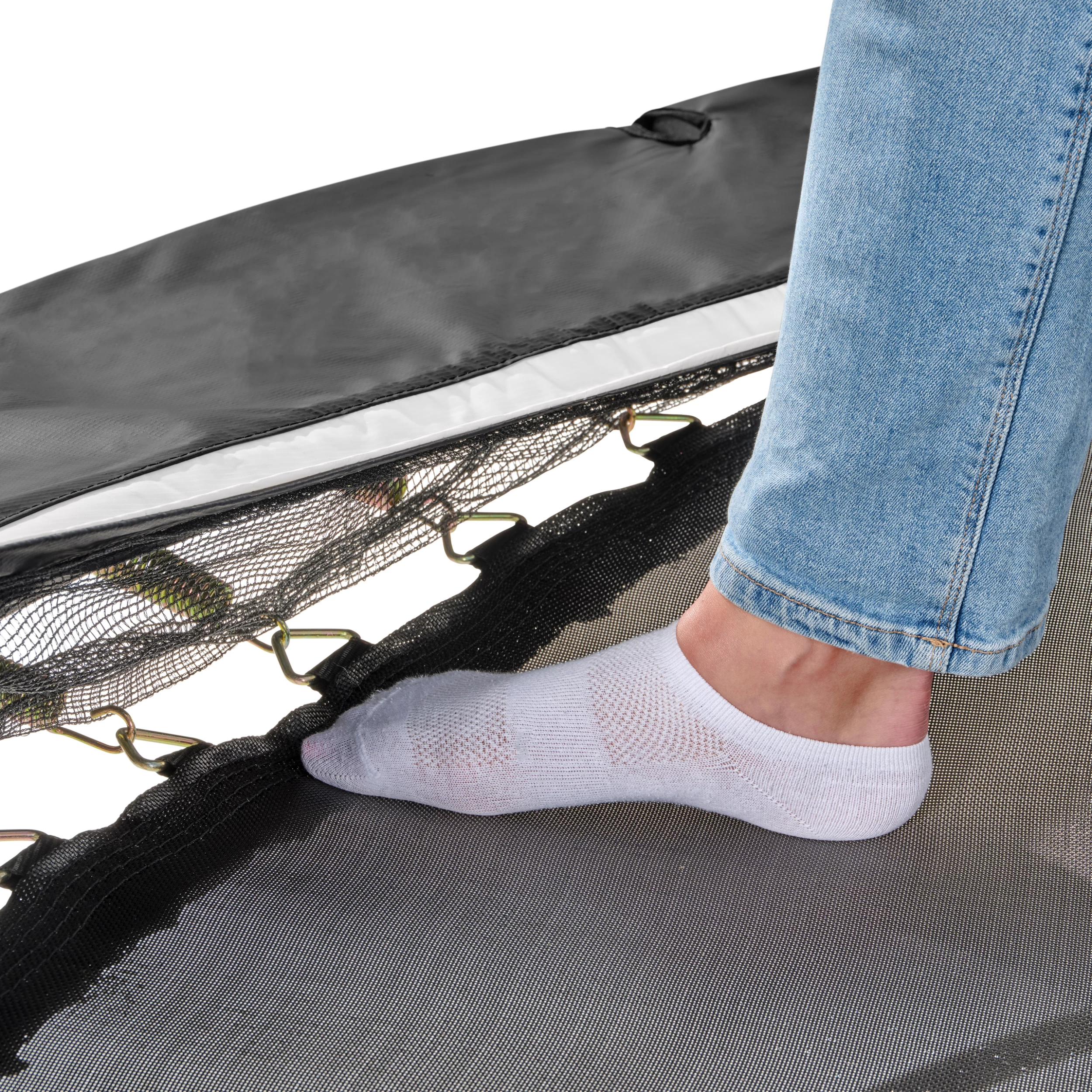 Le trampoline enterré EXIT Allure Classic est un trampoline enterré avec un bord de protection et un filet de sécurité. Grâce au Foot Protection System EXIT (FPS), un filet entre le tapis de saut et le bord de protection du trampoline, les sauteurs du trampoline ne risquent pas de glisser leurs pieds entre les ressorts. Le trampoline enterré Allure est partiellement enterré et est donc facile d’accès pour tout le monde. De plus, le trampoline est livré avec un filet de sécurité. Le filet de sécurité a une entrée superposée qui se ferme automatiquement, de sorte qu’il ne reste jamais ouvert de façon inopinée. Les poteaux du filet de sécurité sont également recouverts de mousse.