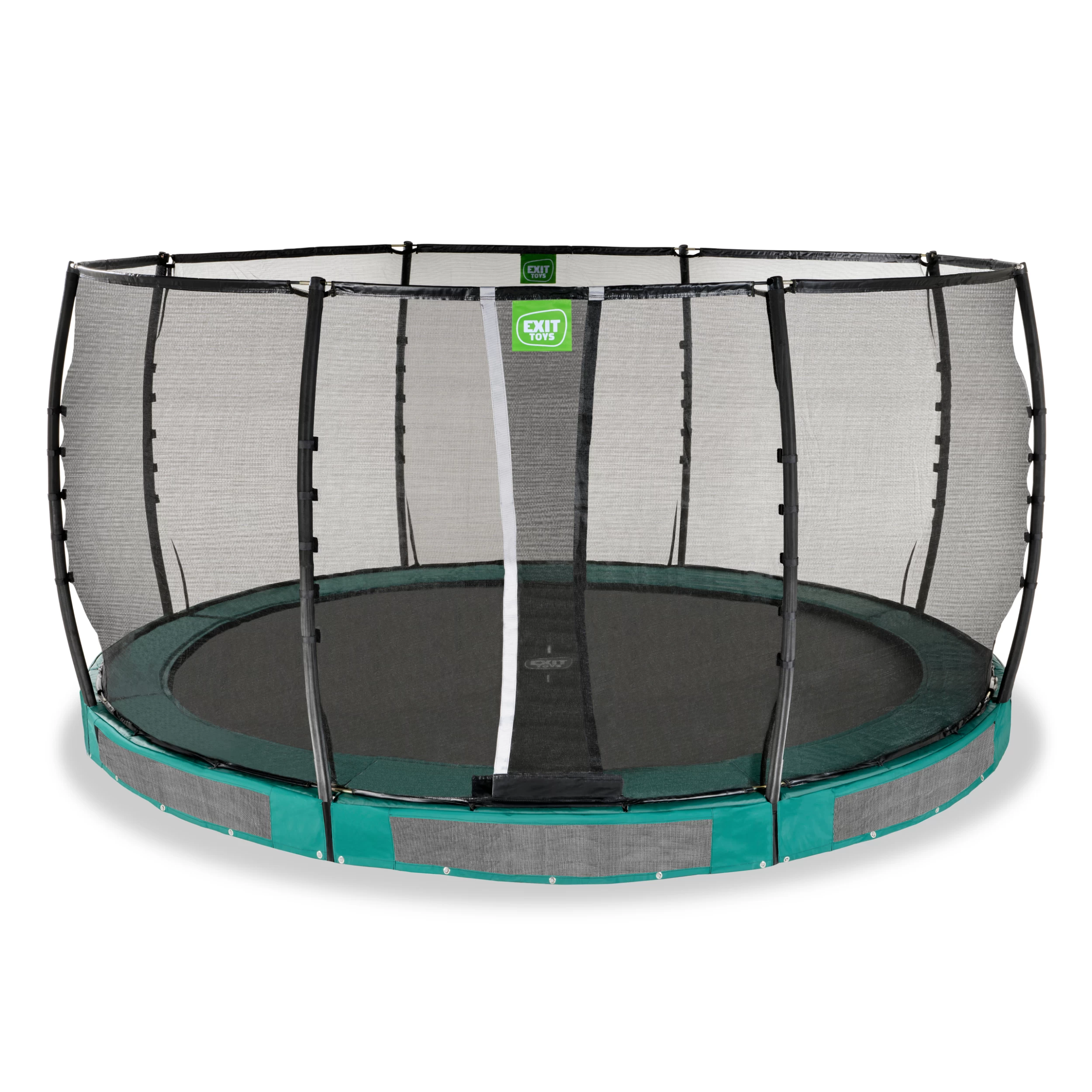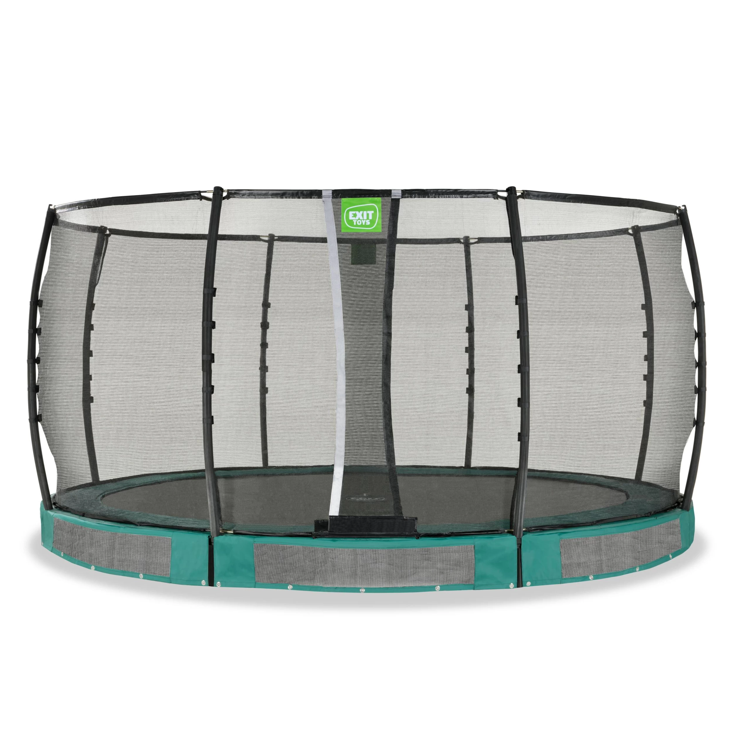 Le trampoline enterré EXIT Allure Premium est un trampoline enterré avec un bord de protection et un filet de sécurité Premium. Grâce au Foot Protection System EXIT (FPS), un filet entre le tapis de saut et le bord de protection du trampoline, les sauteurs du trampoline ne risquent pas de glisser leurs pieds entre les ressorts. Le trampoline enterré Allure est partiellement enterré et est donc facile d’accès pour tout le monde. De plus, le trampoline est livré avec un filet de sécurité Premium. Le filet de sécurité a une entrée superposée qui se ferme automatiquement, de sorte qu’il ne reste jamais ouvert de façon inopinée. Les poteaux du filet de sécurité Premium sont également recouverts de mousse XPE de haute qualité.