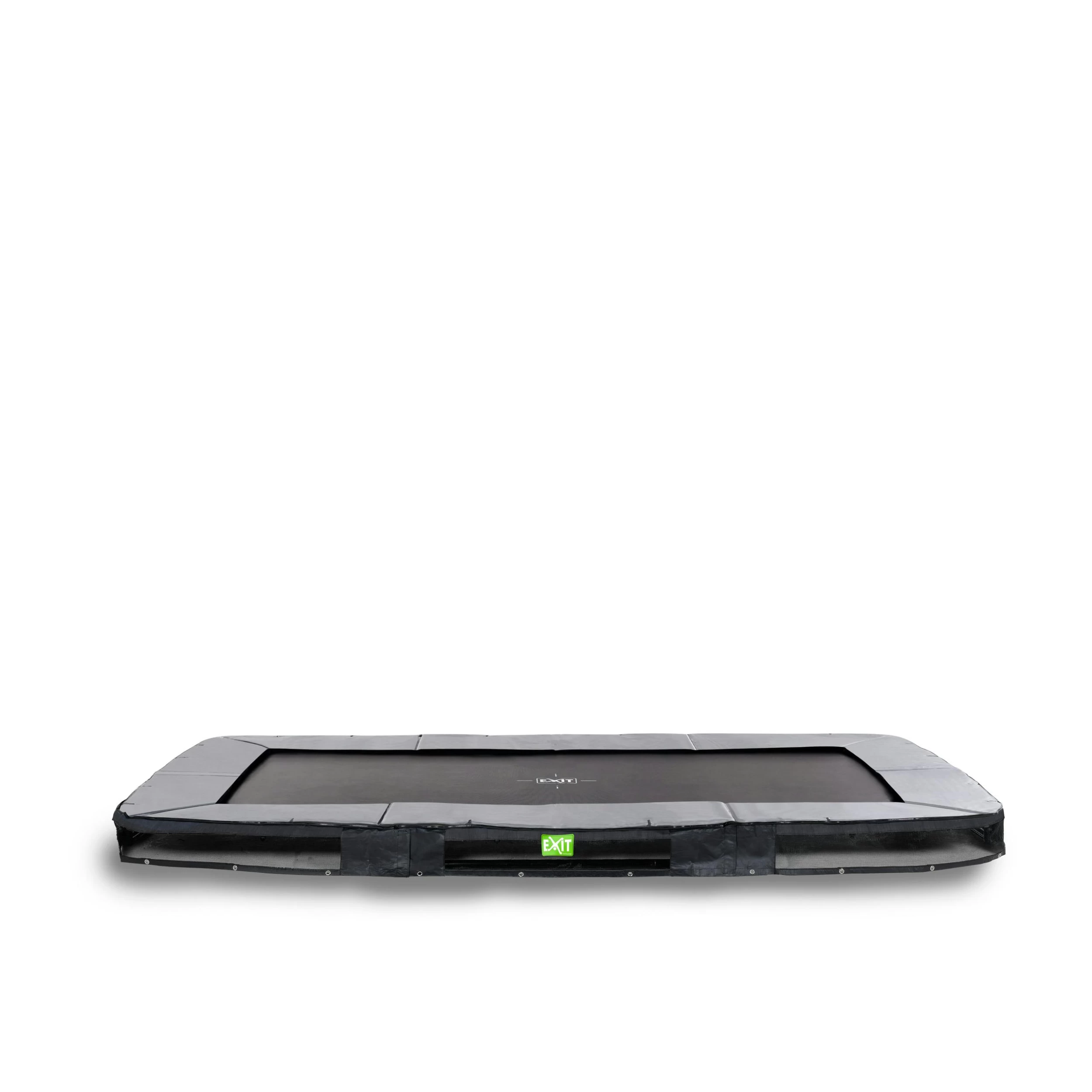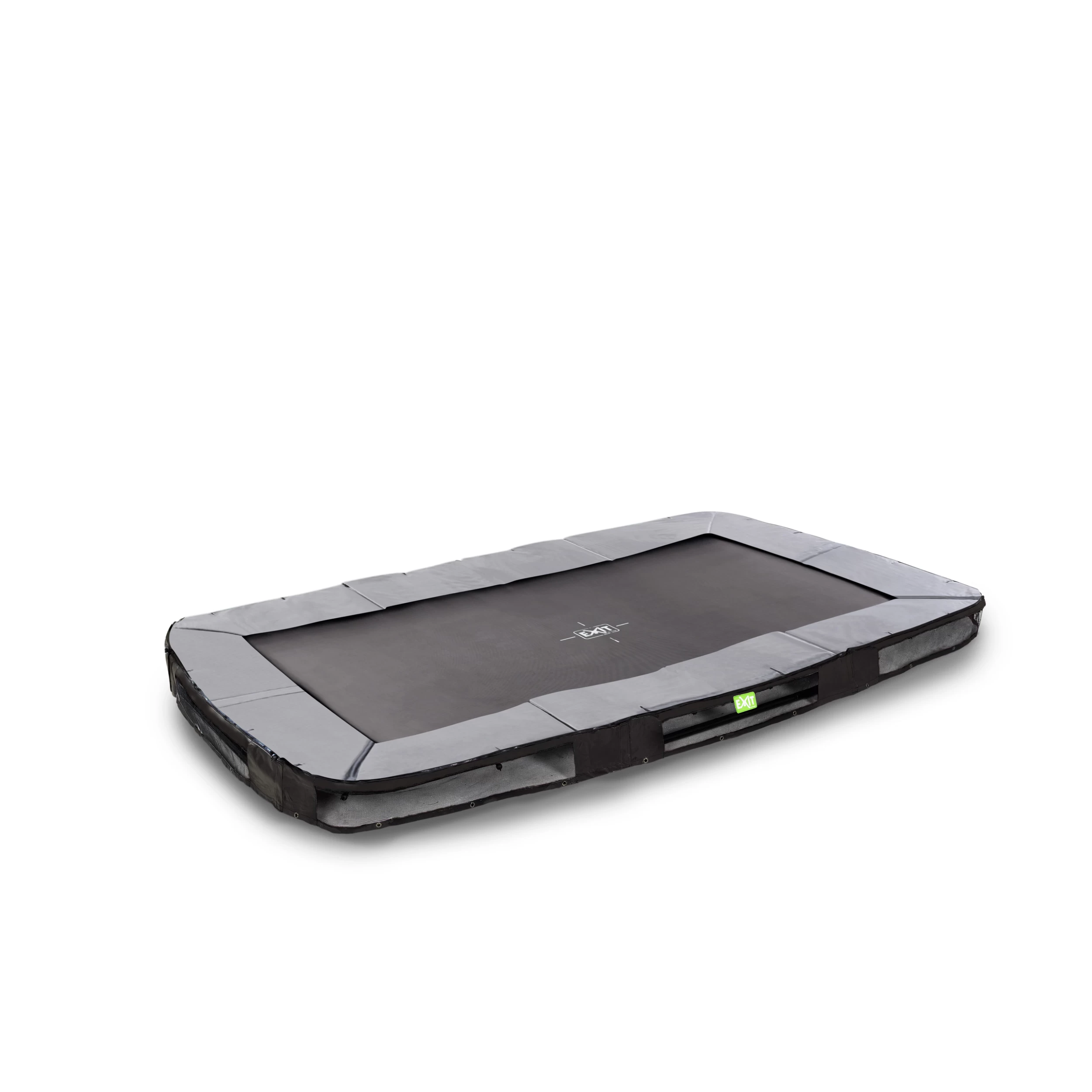 Le trampoline enterré EXIT Elegant sports pour tous à partir de 14 ans est un trampoline rectangulaire de bonne qualité avec un bord de protection gris et une jupe noire. Ce trampoline enterré est livré sans filet de sécurité et est donc facile d’accès. La durabilité de ces trampolines EXIT Elegant sports n’a pas été négligée. Le châssis a été galvanisé avant d’être thermolaqué : la rouille n’a plus aucune chance ! Le rebond efficace – gage de sauts puissants – et l’atterrissage en douceur assurent un excellent confort d’utilisation. La jupe peut être rapidement fixée au bord de protection grâce à la fermeture à glissière. Le robuste bord de protection est équipée du Foot Protection System (FPS) spécialement développé par EXIT Toys pour éviter que les pieds viennent se coincer entre les ressorts pendant les sauts.