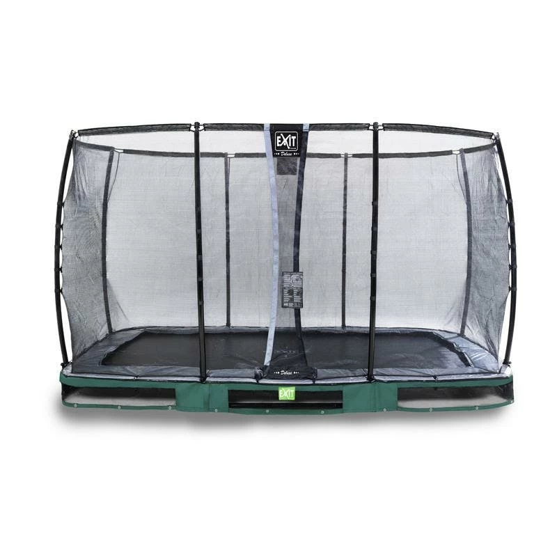 Ce trampoline de forme rectangulaire est partiellement enfoui dans le sol, une solution qui s’avère non seulement très sûre, mais aussi très élégante dans votre jardin. Vos enfants sauteront en toute sécurité !