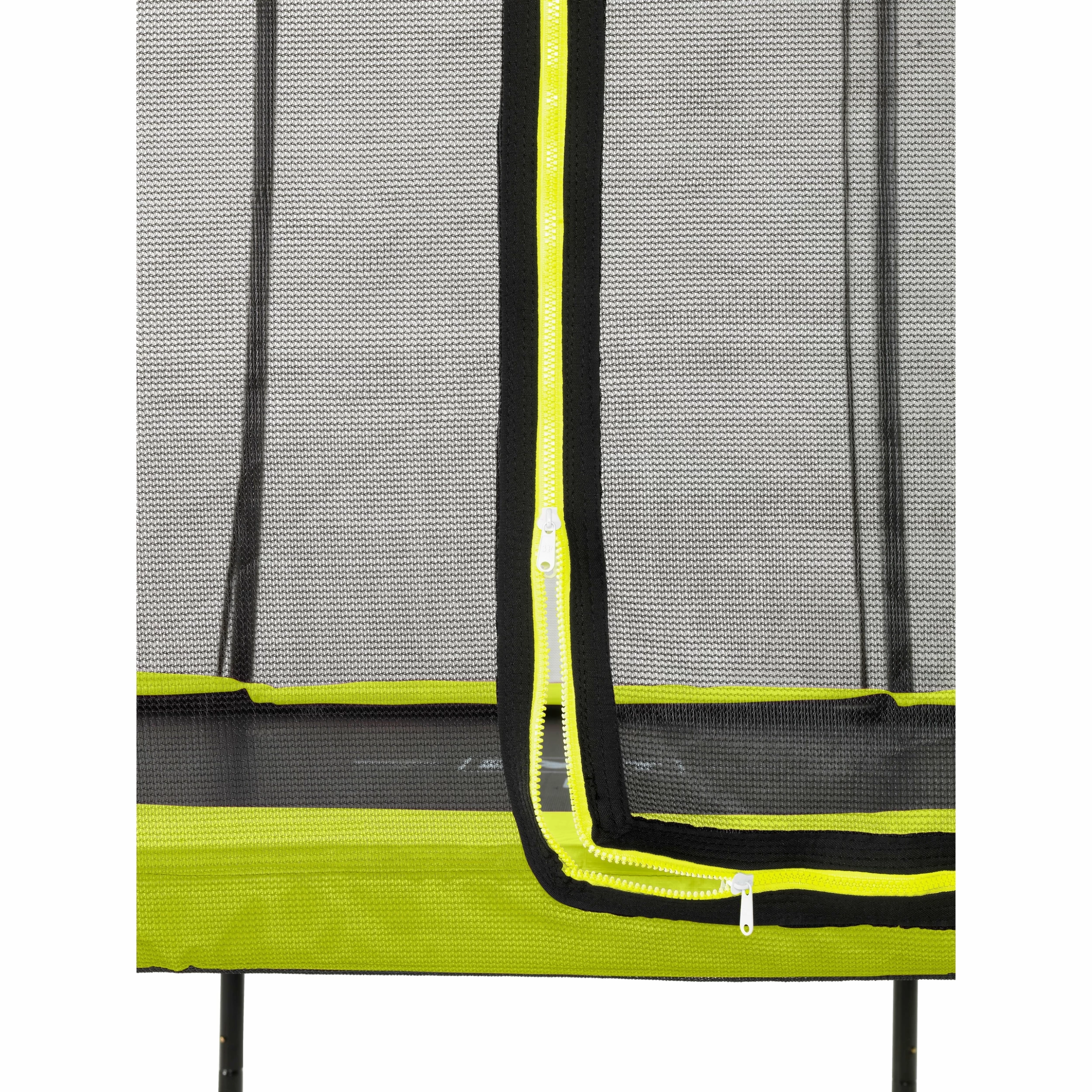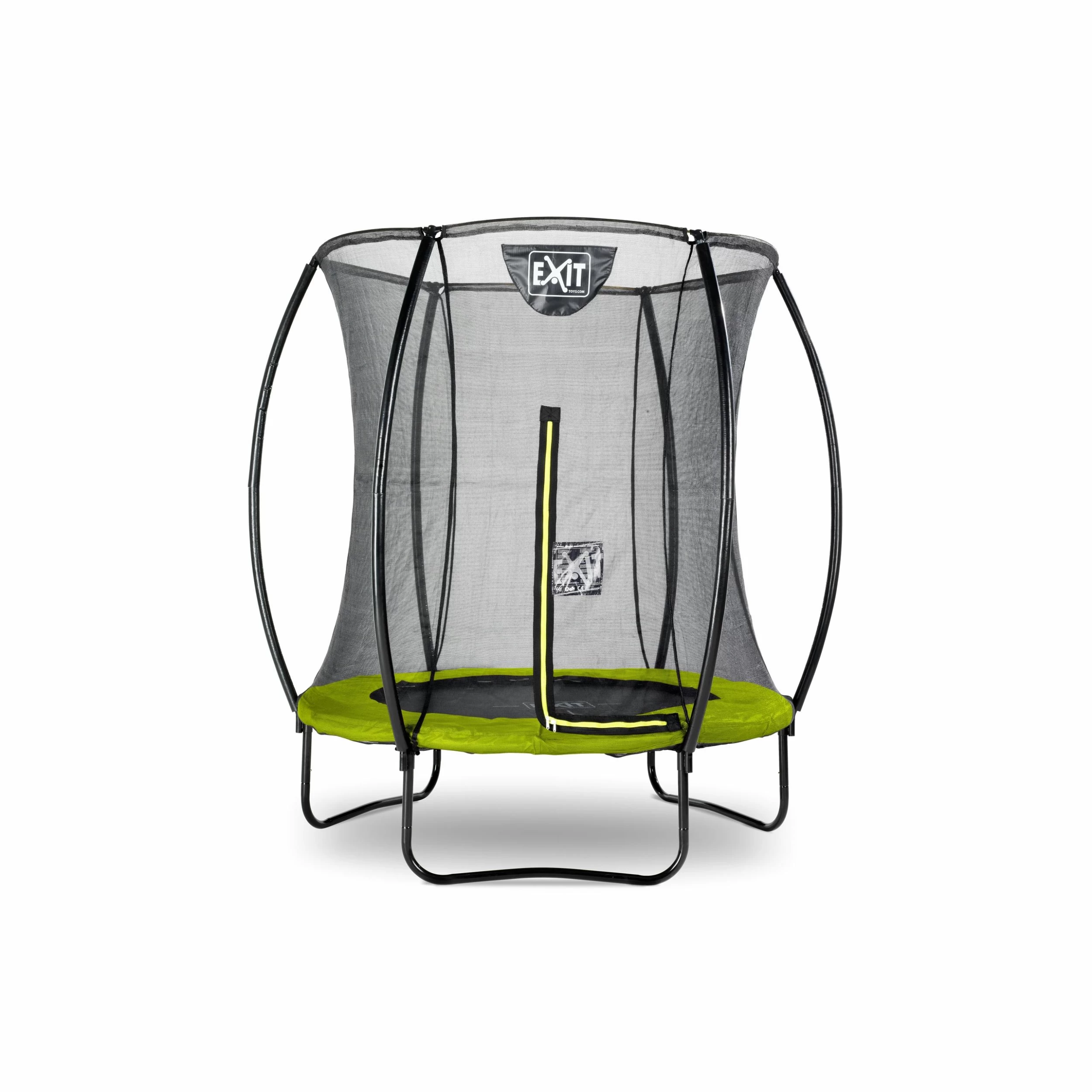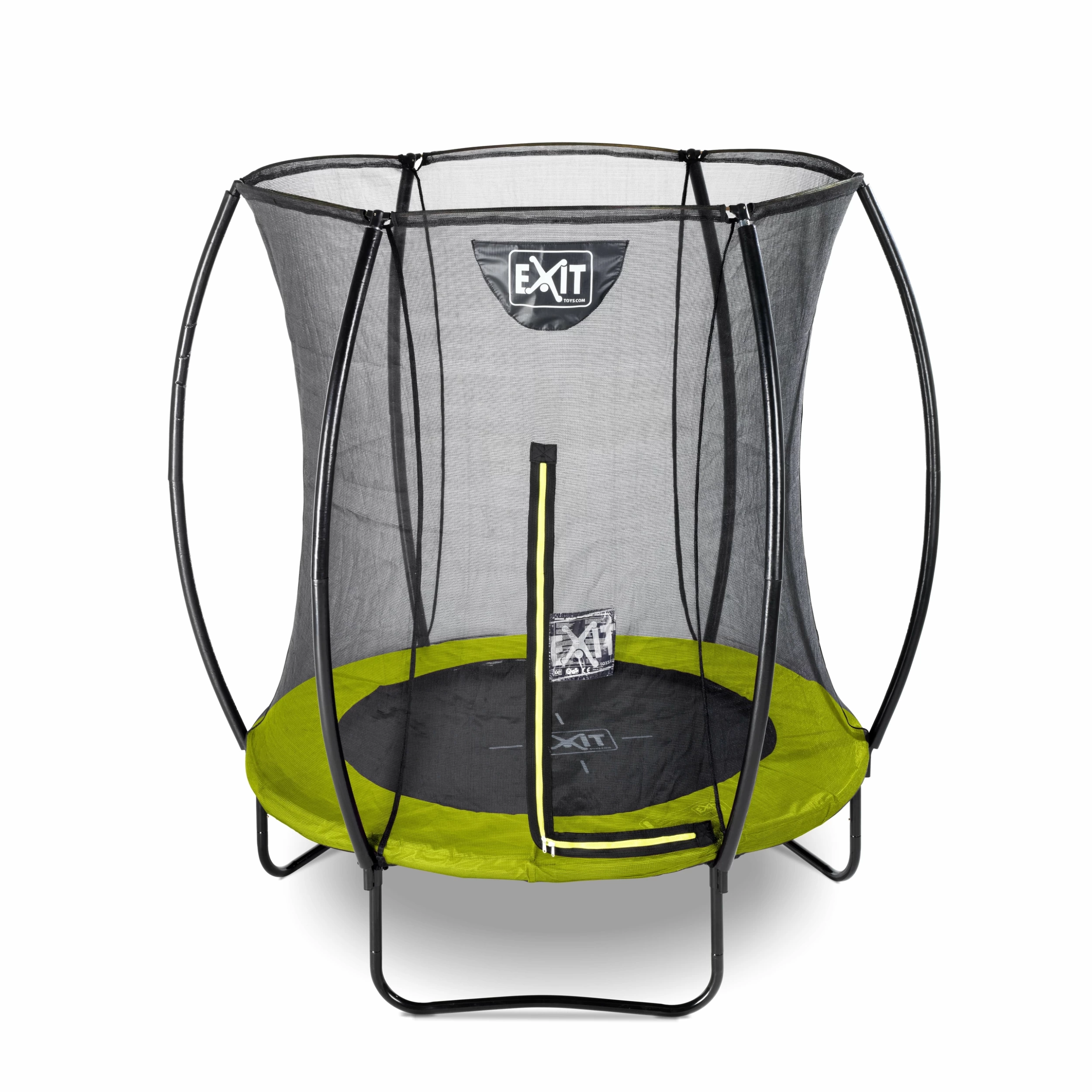 Le trampoline EXIT Silhouette 183cm vert est un trampoline rond compact avec un rembourrage vert lime. Le filet de sécurité est fourni en standard avec le trampoline sur pieds et il est suspendu très tendu à ses supports courbes. Ce n’est pas seulement très sûr car les enfants ne peuvent pas s’emmêler dans le filet, mais cela a également l’air beaucoup plus joli dans votre jardin. Le filet de sécurité a une fermeture éclair verte fluorescente accrocheuse afin que vous puissiez voir immédiatement si la fermeture à glissière est correctement fermée.