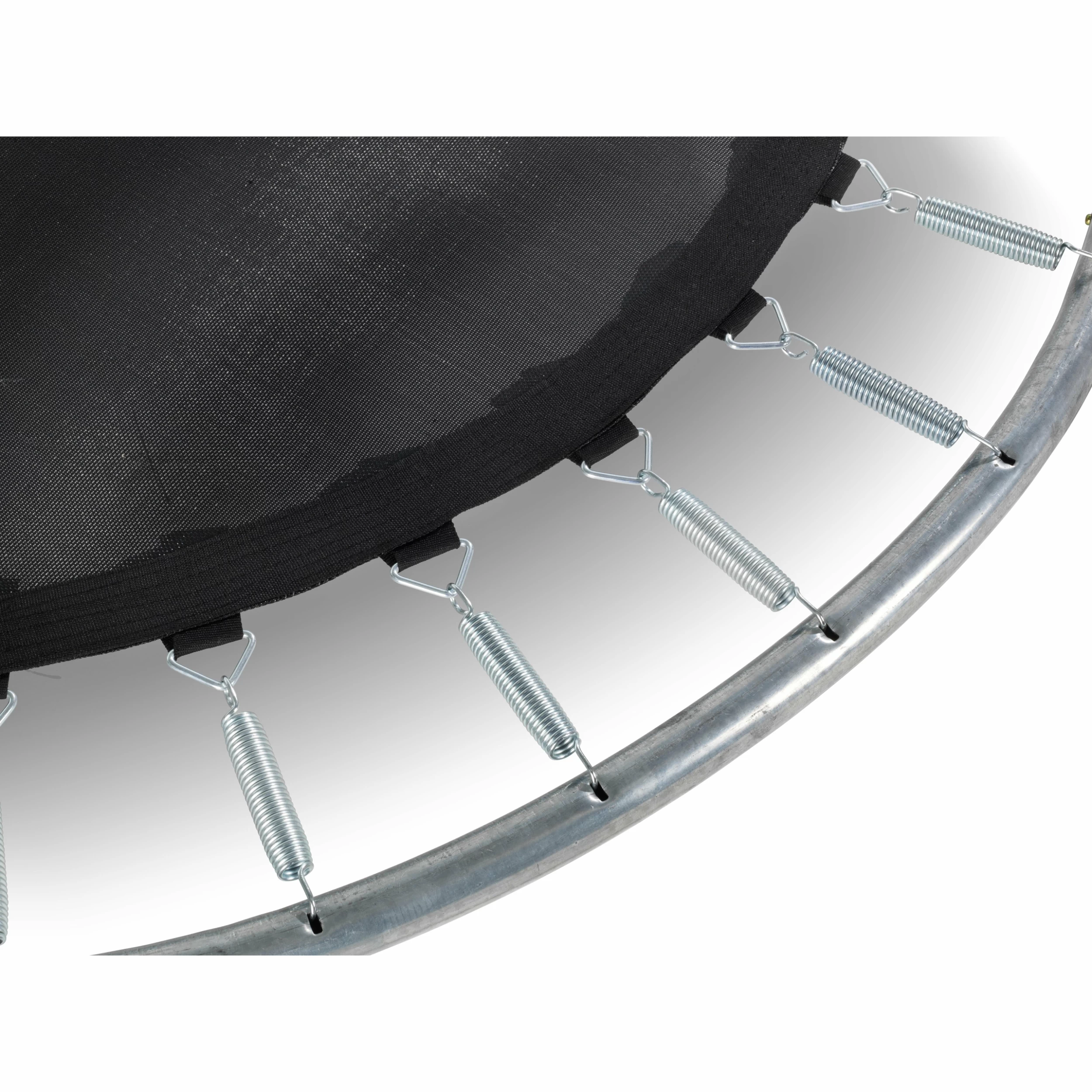 Le rembourrage de haute qualité recouvre complètement les ressorts galvanisés et dispose d’un système de sécurité des pieds spécialement développé qui empêche les pieds de s’emmêler dans les ressorts. Les ressorts robustes garantissent une grande puissance de saut. Le cadre du trampoline Silhouette est galvanisé et peint par poudrage, donc aucun risque de rouille. Les trampolines EXIT Silhouette sont cool, robustes et garantissent un plaisir de saut sans fin!