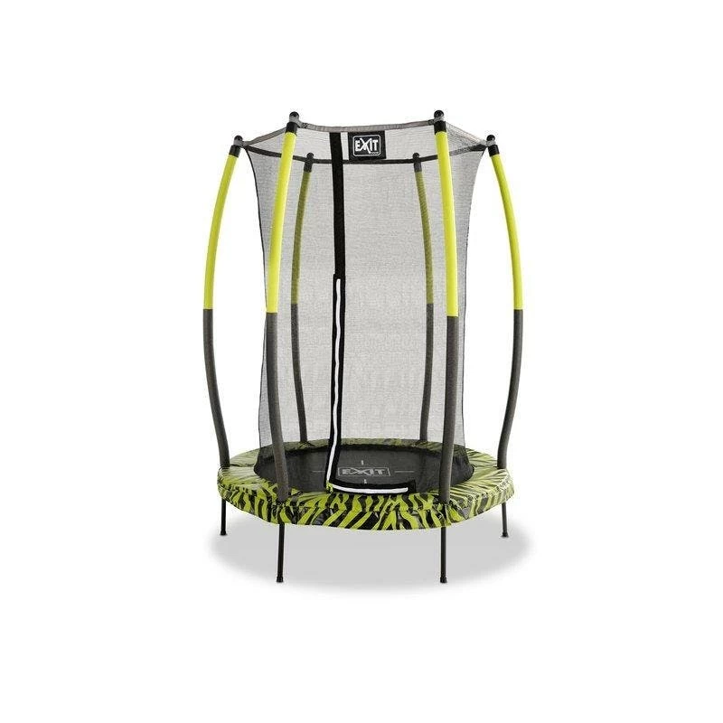 Trampoline EXIT Tiggy junior 140 cm avec filet vert est un mini trampoline pour les enfants de trois à cinq ans. Ce trampoline rond compact avec filet de sécurité a un rembourrage gris noir avec un imprimé tigre cool et une marche basse, afin que les jeunes enfants puissent facilement monter sur le trampoline. Sur le trampoline EXIT Tiggy junior 140 cm avec filet vert, les plus petits connaîtront la plus grande joie de sauter !